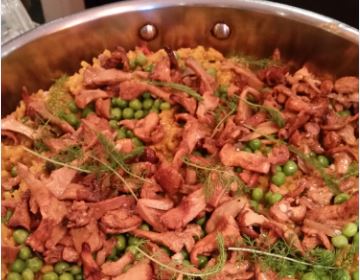 “I approached the redux by thinking about chicken and its texture and what could be similar because I wanted to keep the integrity of the paella’s flavors,” Gray told Latest Vegan News. “Chanterelle mushrooms are booming this time of year and I thought what better than integrating a wonderful, seasonal mushroom to take on the role of the protein. I also decided to drive acidity into the paella by using summer tomato and garlic compote to give the dish that intense ‘omph’ that rice often needs. Sweet peas are sauteed as a finishing garnish giving our paella the classic pea garnish found in so many paella dishes from Spain. The response to the paella has been the best so far!”