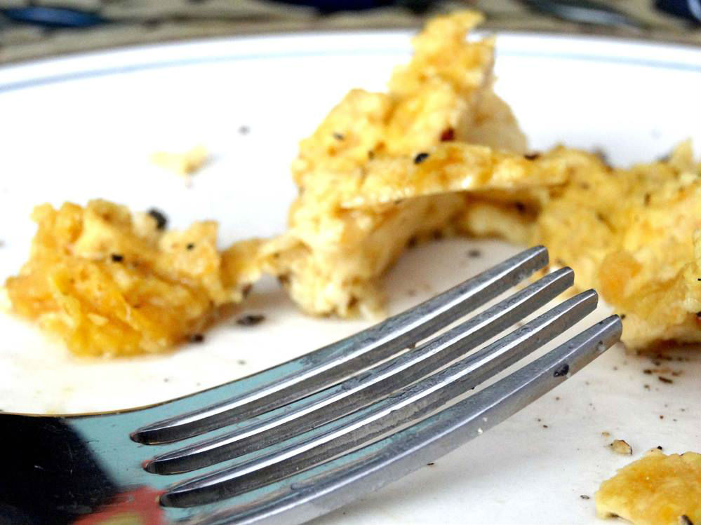 Vegan scrambled eggs that are chicken approved—what more could any herbivore ask for?