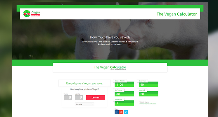 The calculator was created by Luke Dowding, aka “The Vegan Web Designer.” Dowding became vegan thanks to the influence of his parter — a former vegetarian turned vegan. Now, the two are dedicated to the cause together.