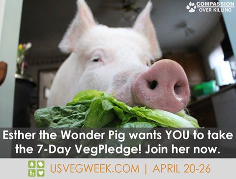 “Celebrity and political supporters who are new so far this year include Dennis & Elizabeth Kucinich, Louis Psihoyos (Director of ‘The Cove’), Jane Velez-Mitchell, Micah Risk, MN Senator Scott Dibble and Patrick McDonnell (creator of MUTTS comics),” Erica Meier, Executive Director of COK, tells Latest Vegan News of the VegWeek 2015 effort. Esther the Wonder Pig is also lending her hefty girth to the campaign.
